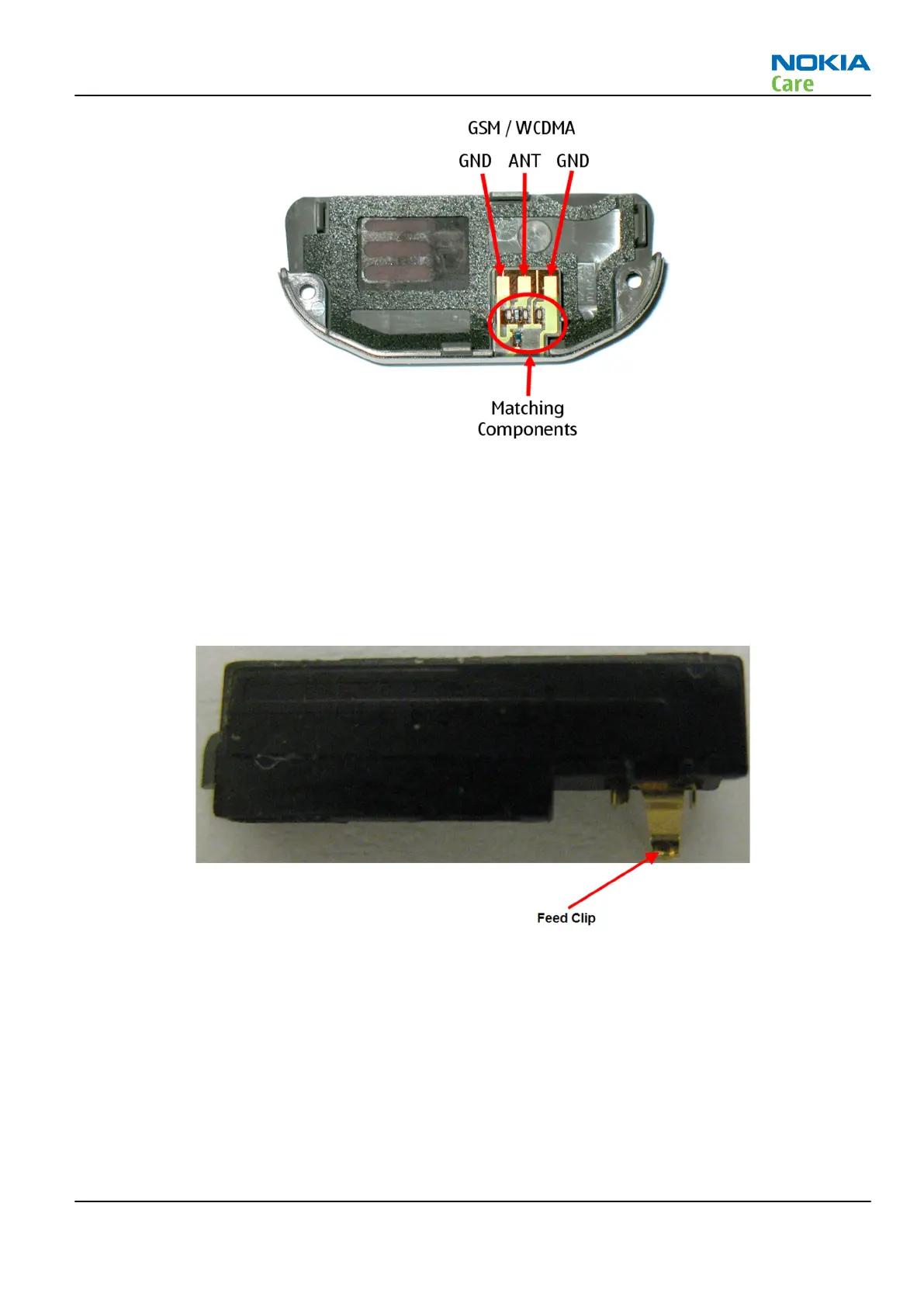 a wire on the flex. The Bluetooth antenna includes a spring clip, which establishes the contact to Bluetooth