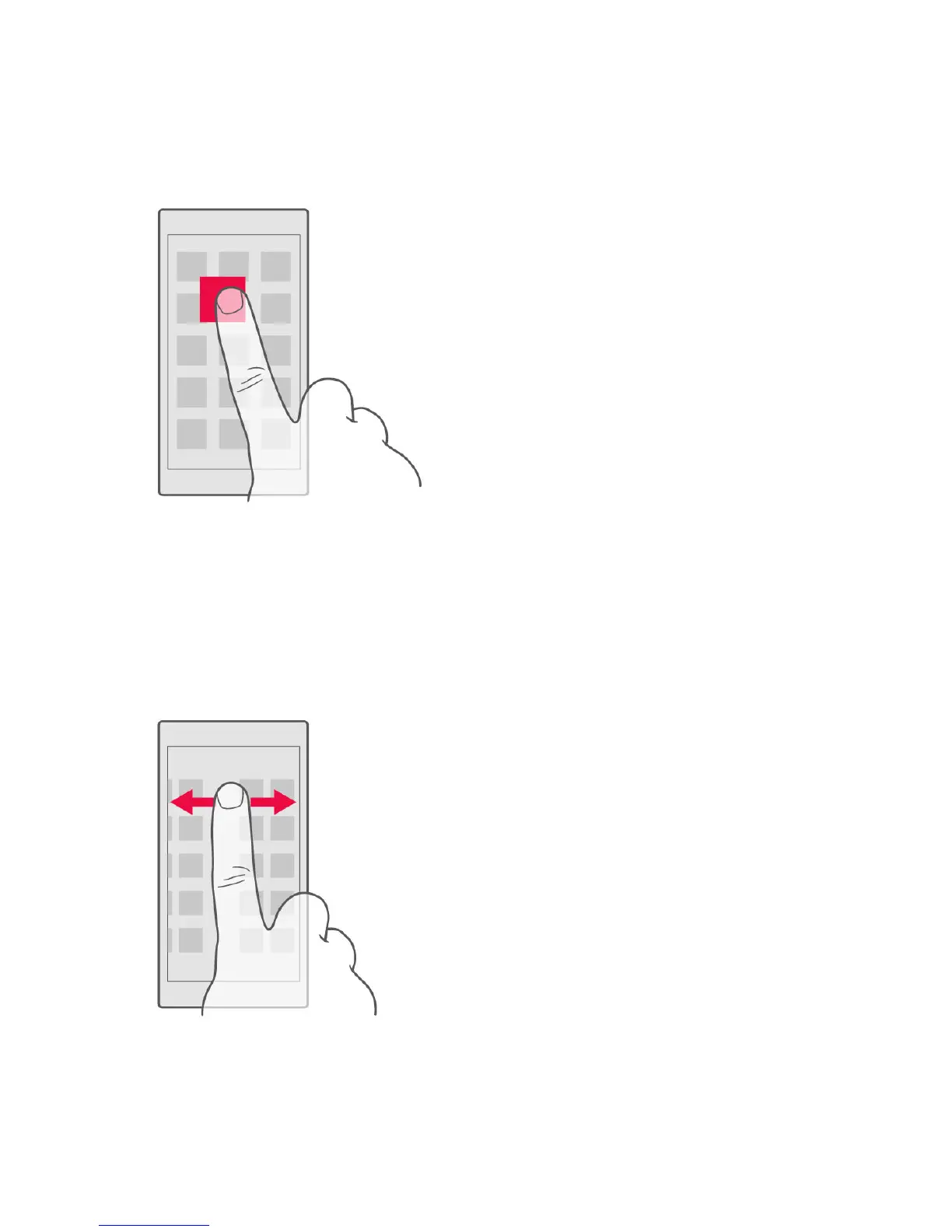 Place your finger on the screen, and slide your finger in the direction you want.