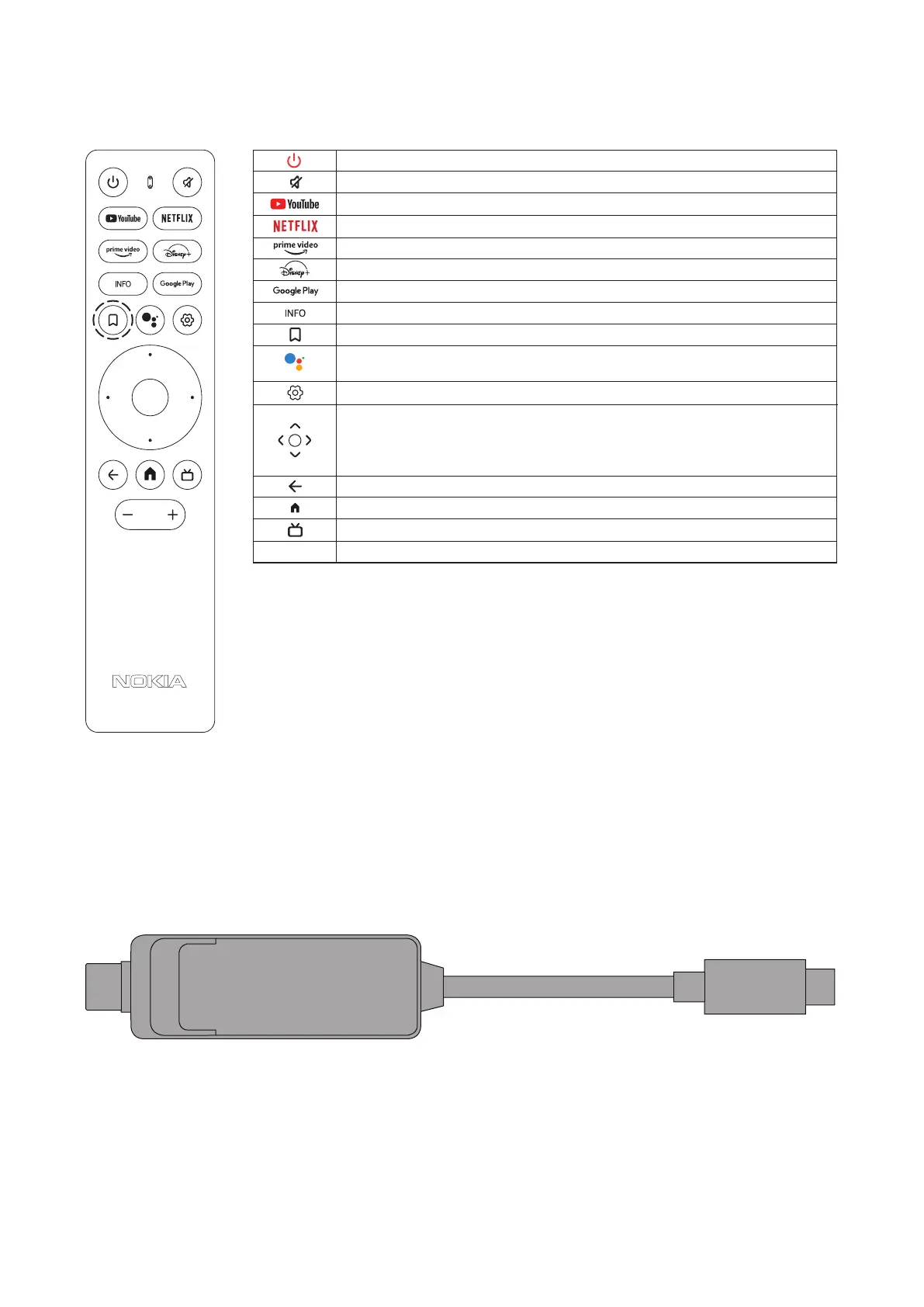 Activates the „Hey Google“ function and the integrated microphone in the remote