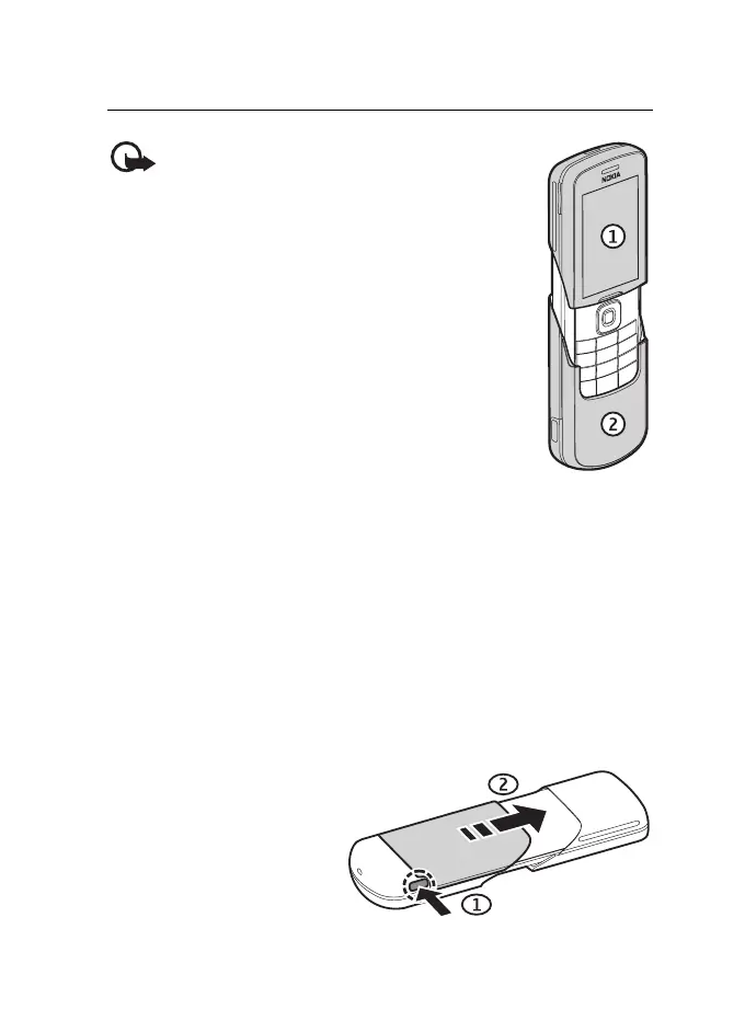 button (1) and slide the cover