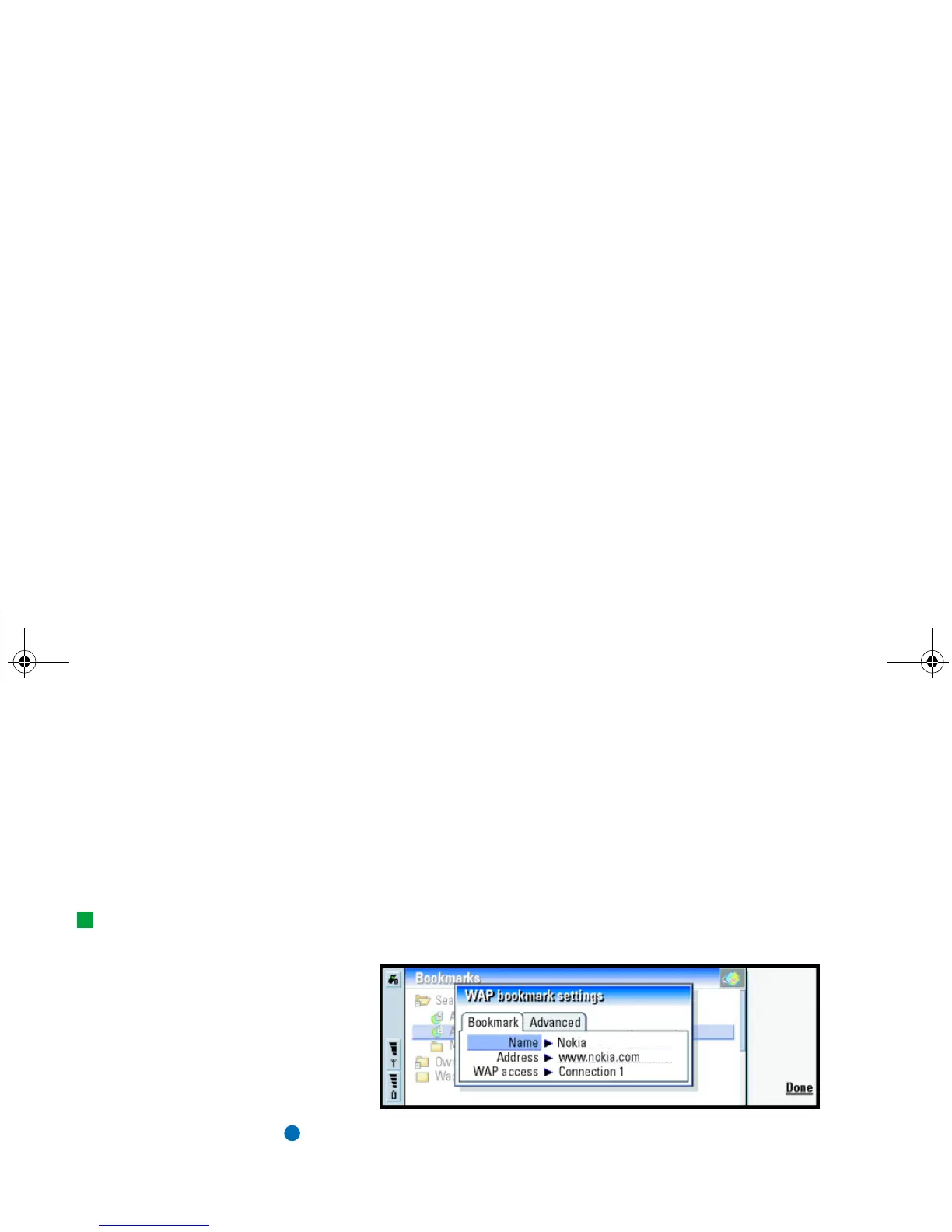 Note: A bookmark always uses the same connection defined in the WAP access