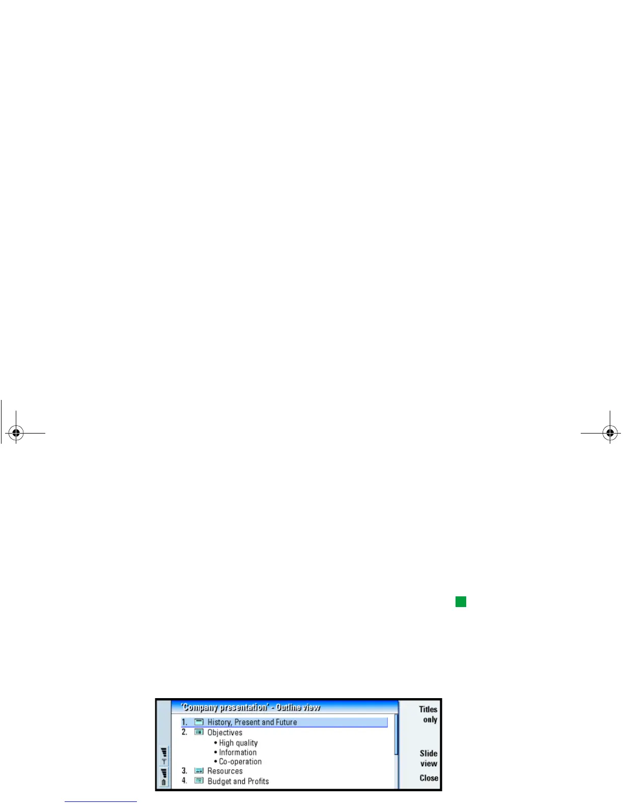 view where the text content of the presentation is in a list format. See Figure 82.