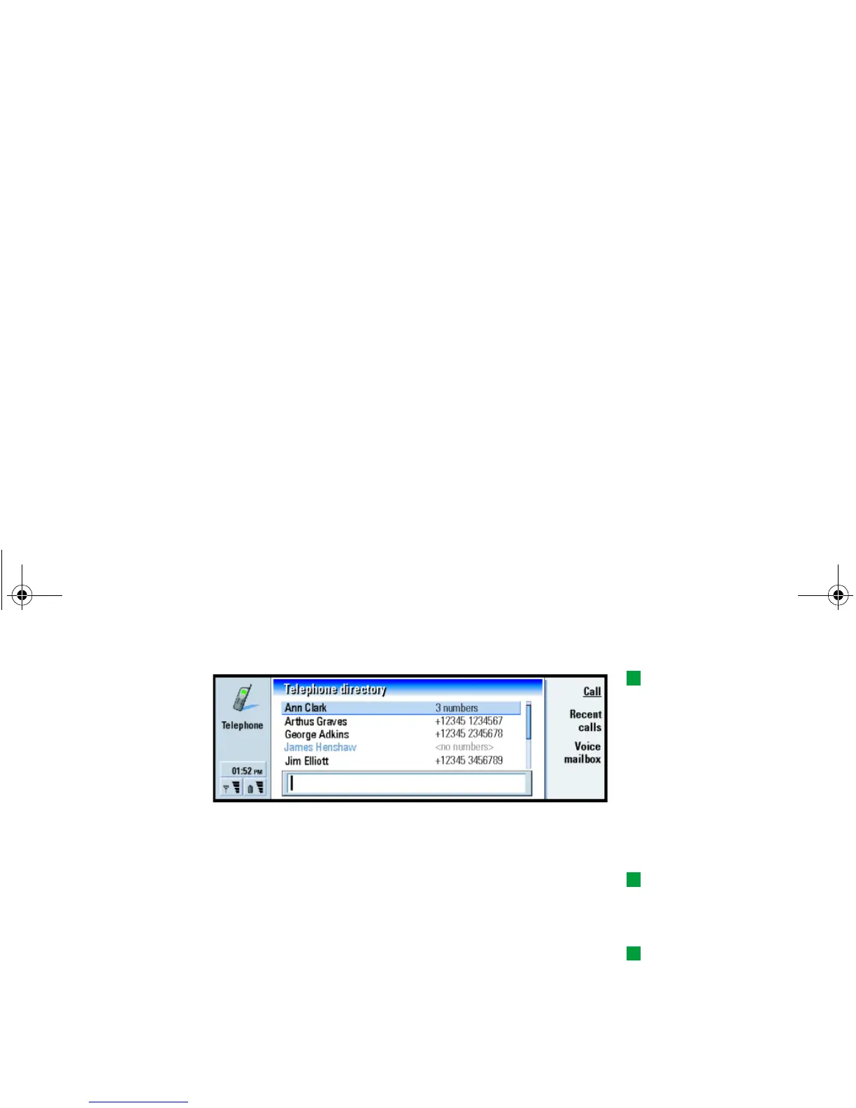 1 In the main view, press Recent calls. The Dialled calls dialog opens. If you have