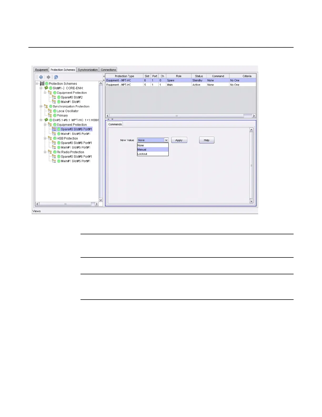 1. Select Protection Schemes/Slot#/Equipment Protection/Spare#0 in the