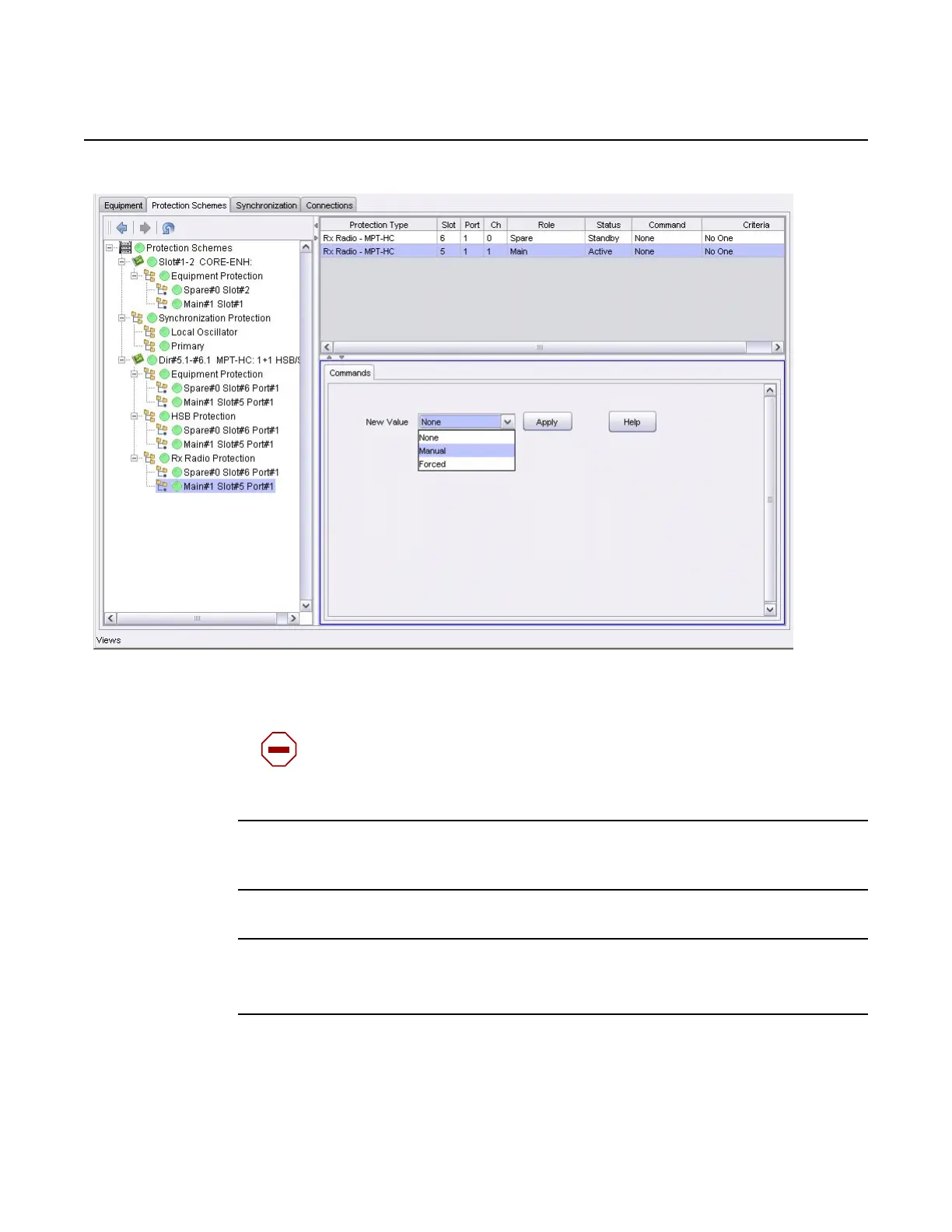 1. Select Protection Schemes/Slot#/Rx Radio Protection/Spare#0 in the