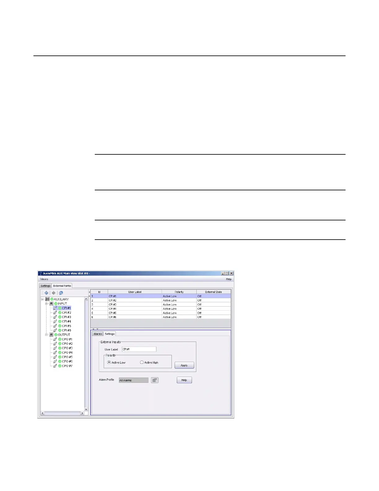 • To provision external alarm inputs