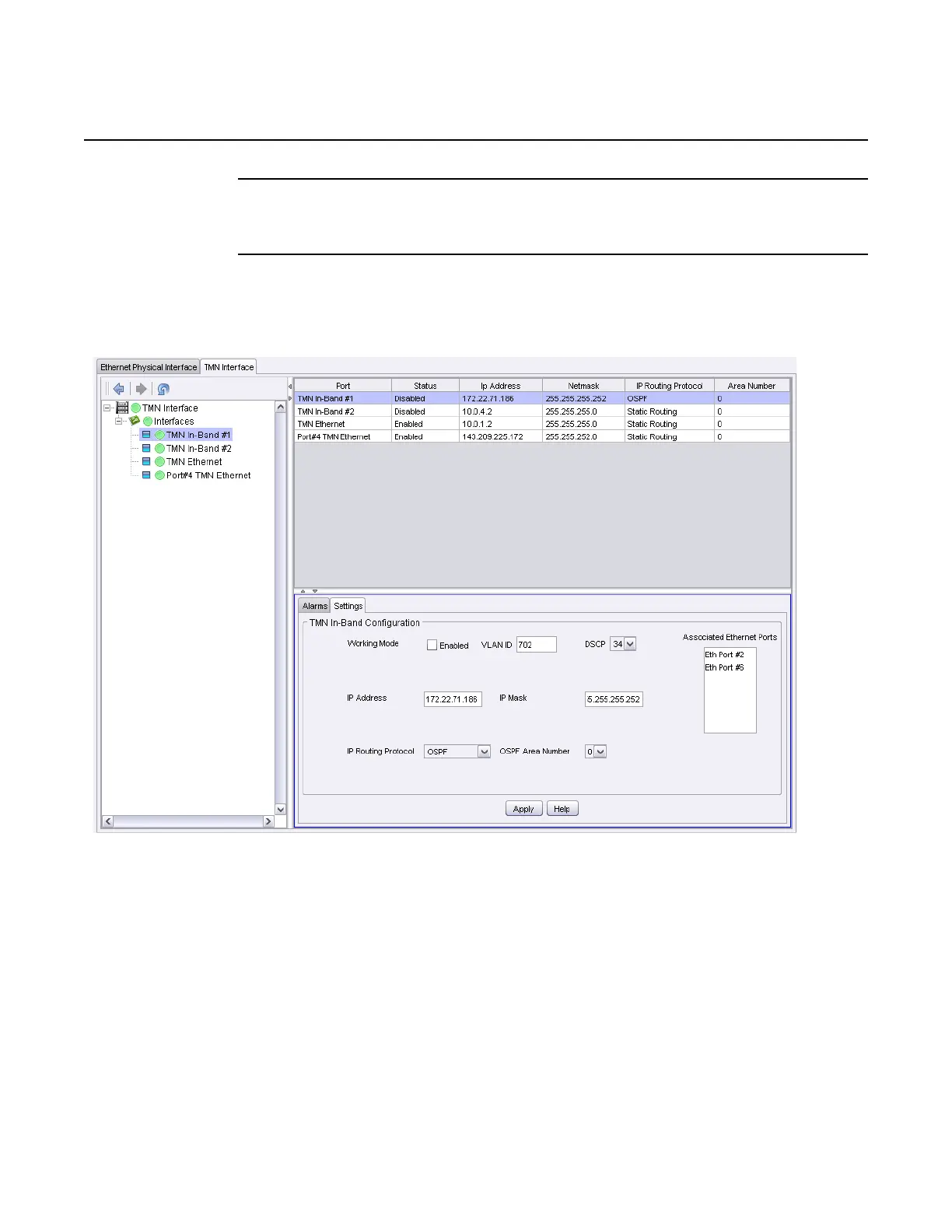 Figure 41 TMN In-band Port Disabled