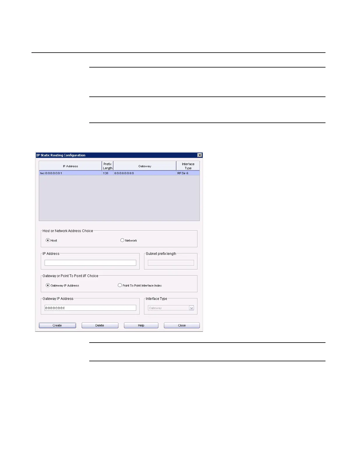 Figure 49 IP Static Routing Configuration window (IPv6)