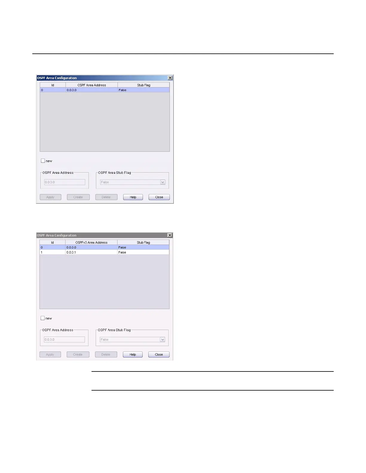 Nokia 9500 MPR - Figure 51 OSPF Area Configuration Window (Ipv4); Figure 52 Ospfv3 Area Configuration Window (Ipv6)