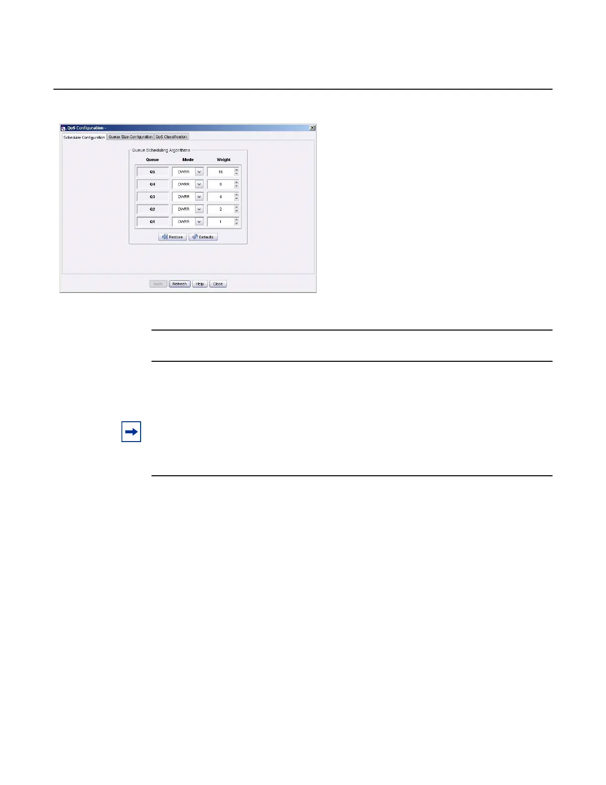 3. If Mode selection is DWRR, from the Weight column select queue weight (1 to