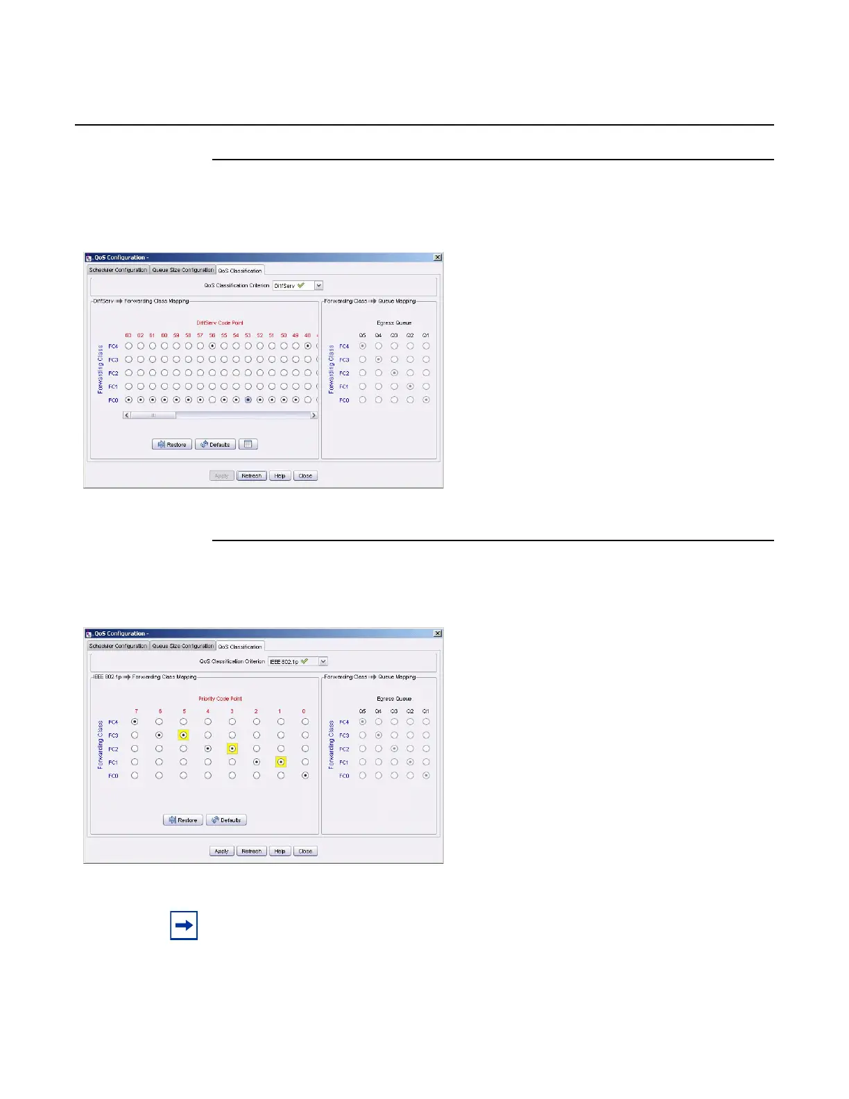 Note: The background of modified IEEE 802.1p PCP to Forwarding Class field is displayed
