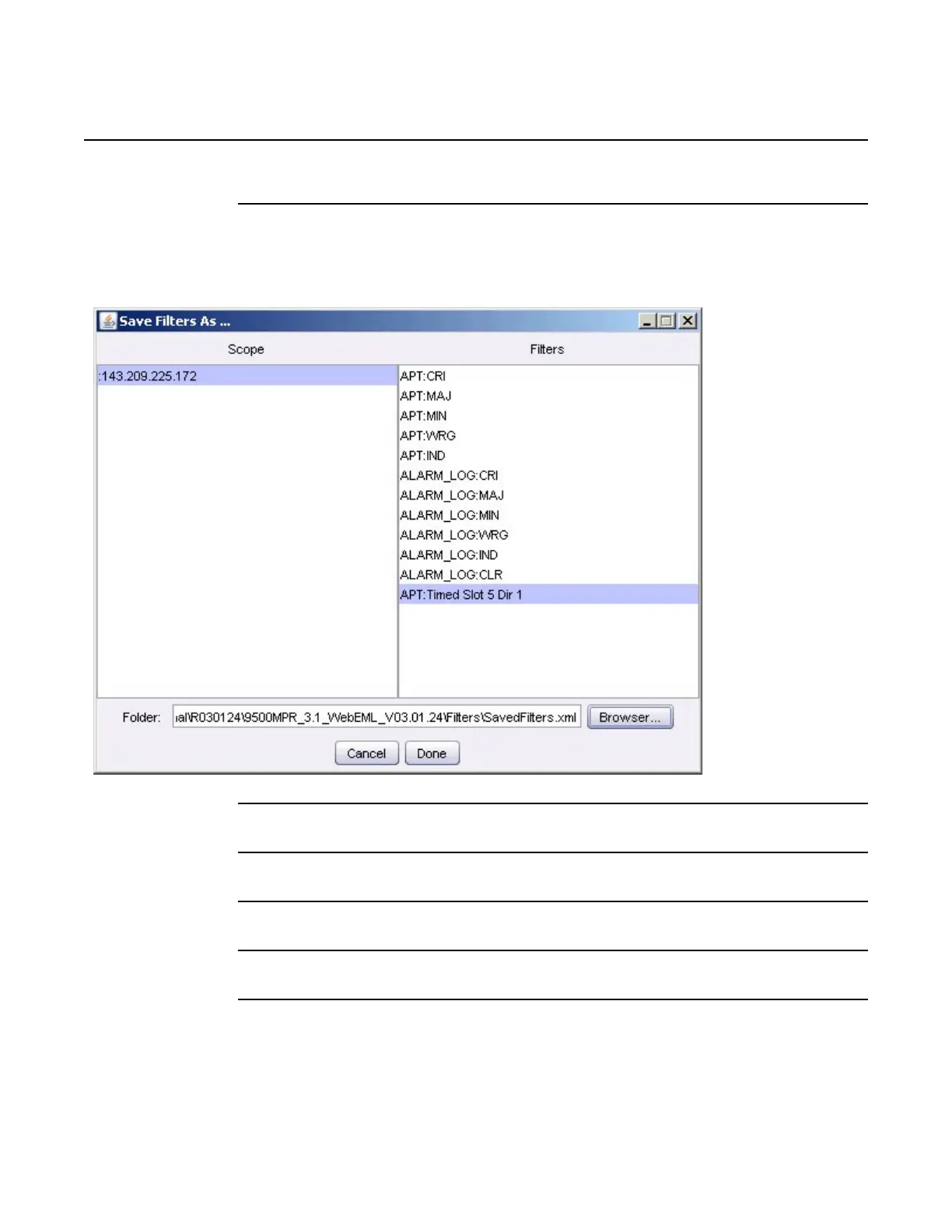 2. From the scope pane, select the NE on which the filter to save resides.
