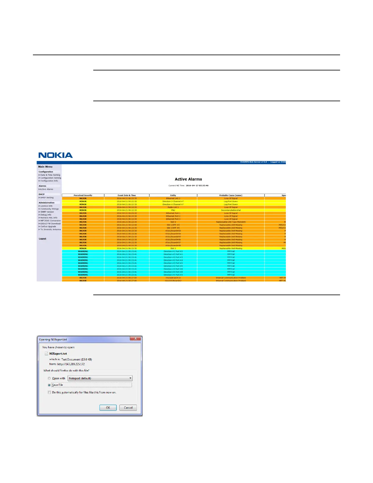 steps to log in to an NE using a web browser, see Log in to and out of system.