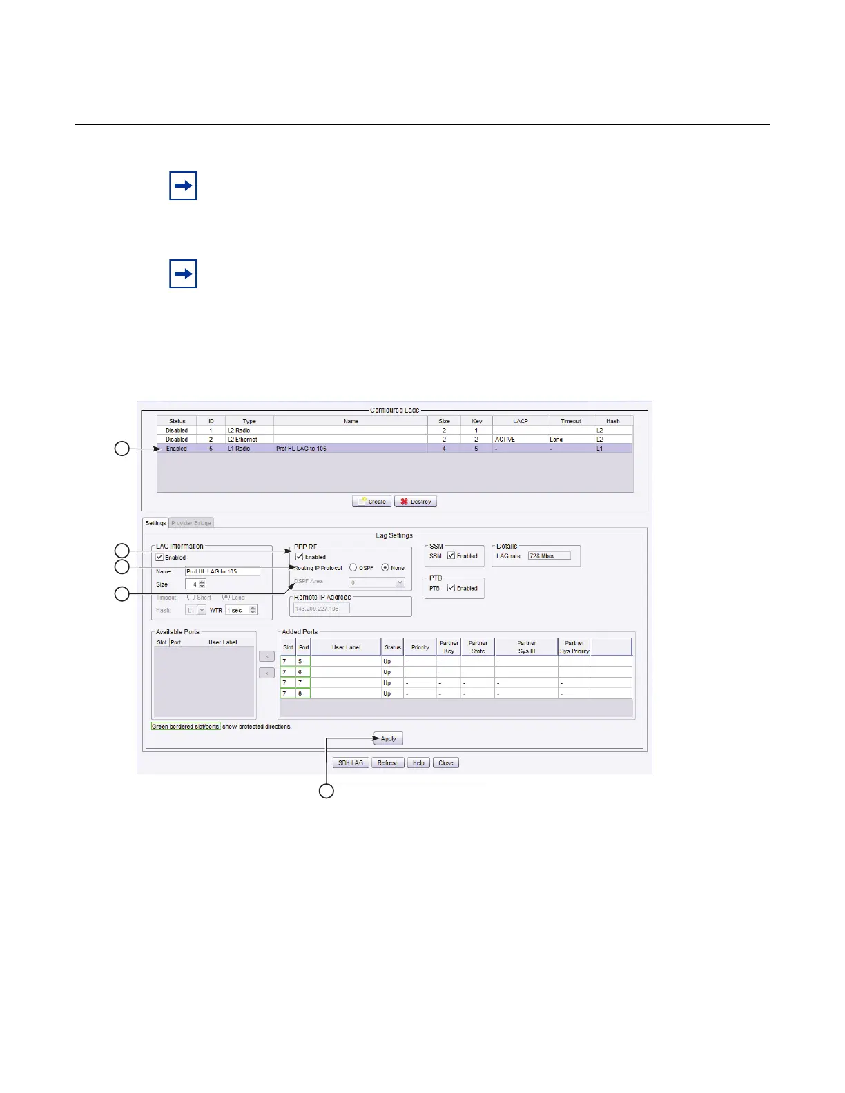 i. From the Configured LAGs pane, select LAG to enable PPP RF channel.