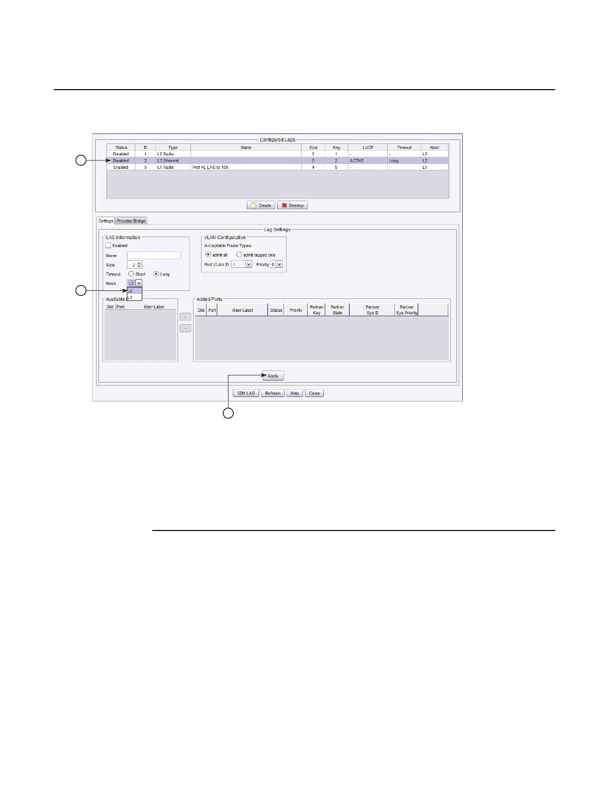 ii. From the LAG Information pane, in the Hash drop-down menu, select (L2