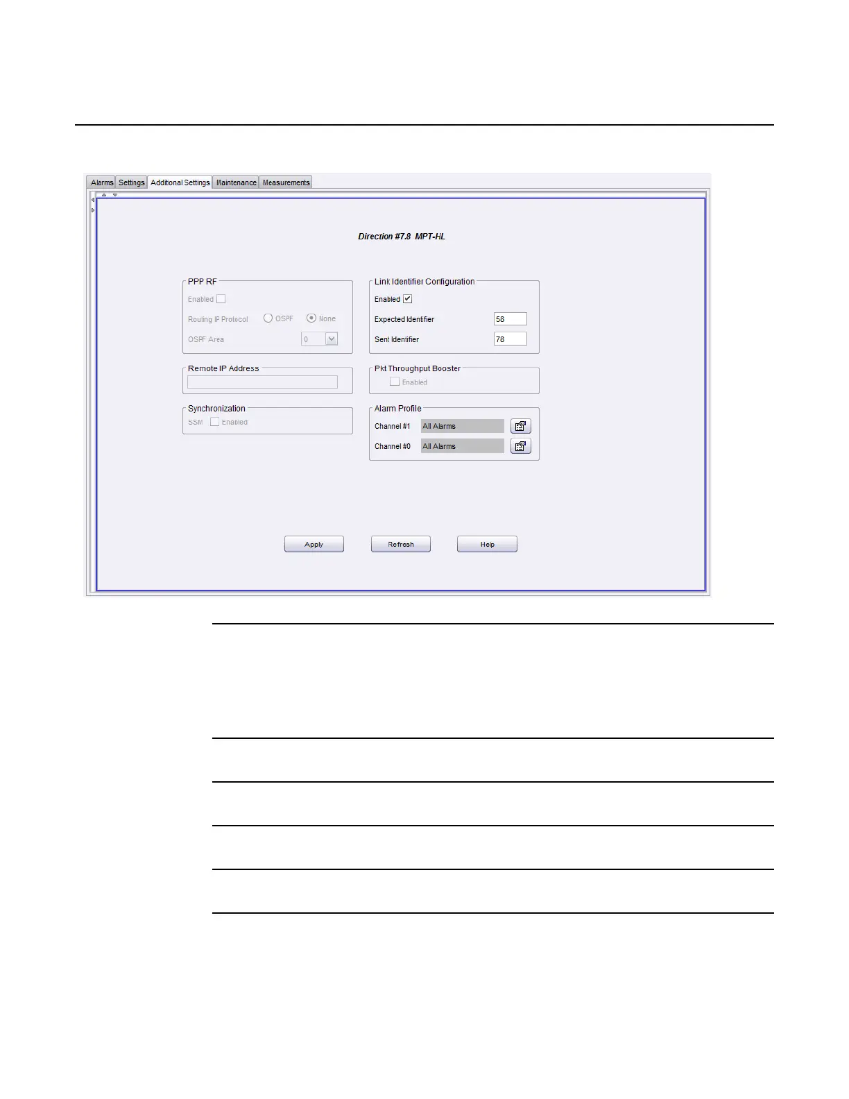 Figure 190 MPT-HL Radio Channel Additional Settings tab