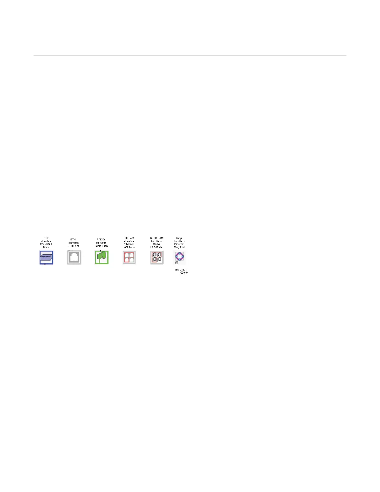 • Blue icon on RADIO and PDH (P32E1DS1/P2E3DS3) ports indicates the ports