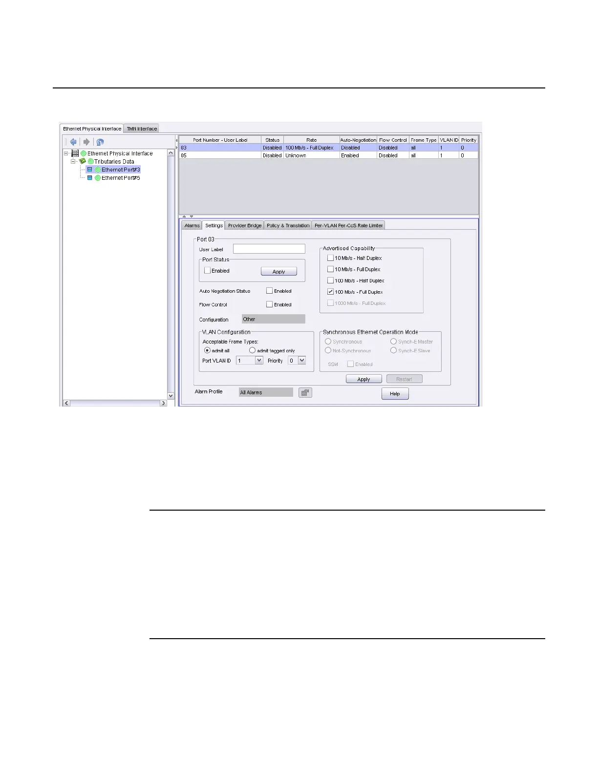 1. Provision Ethernet port capabilities parameters to correspond to the link partner