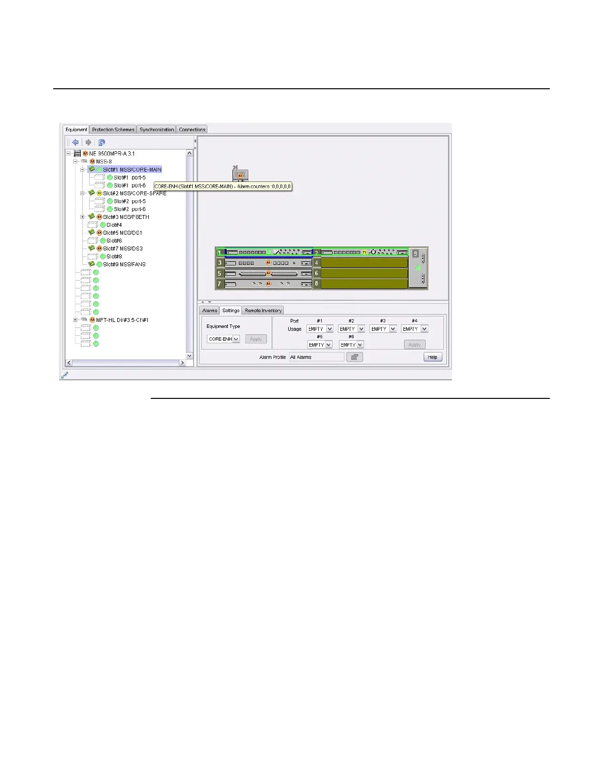 Nokia 9500 MPR - Figure 250 Resource List Area: Core-E SFP Slot Selected
