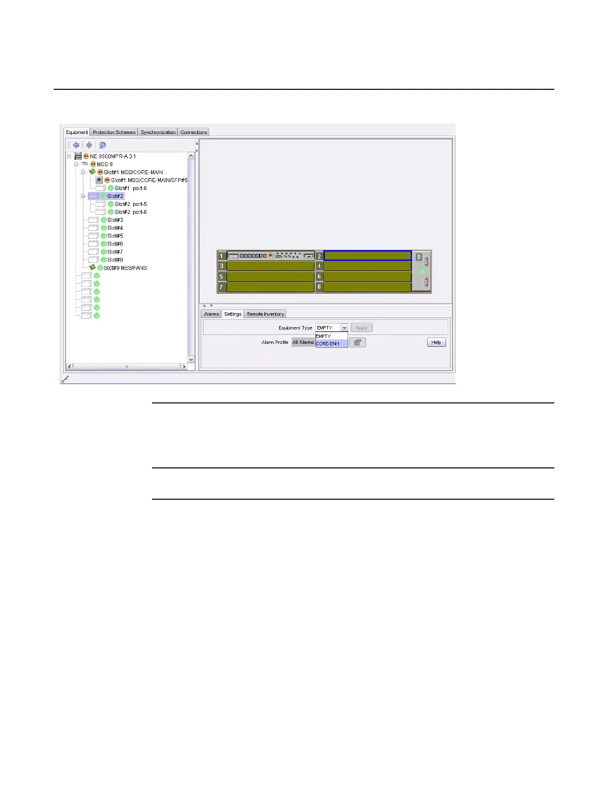 Figure 295 Select spare Core-E equipment type