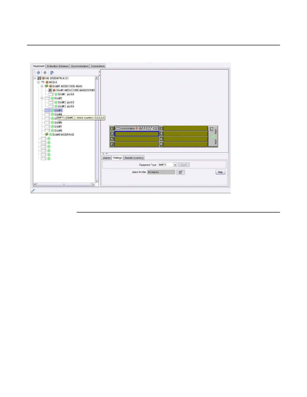 selected slot in blue on the graphical representation of the MSS shelf in the