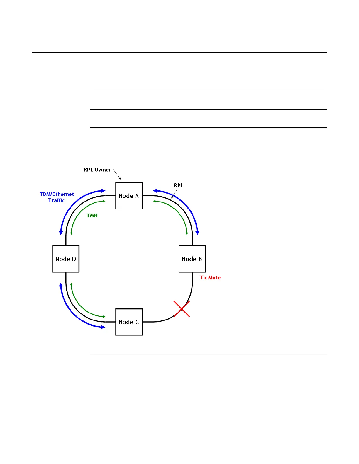 3. Activate a Tx mute on Ring Node B toward Node C, see Figure 389. This will