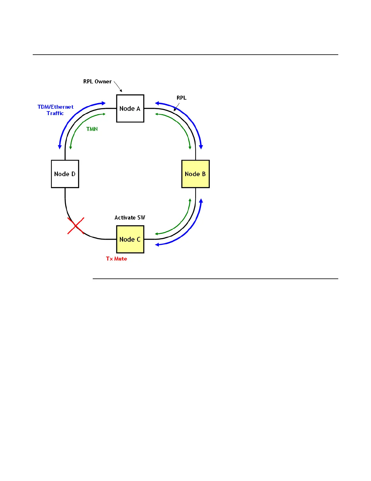 7. Remove the Tx mute toward Node D, see Figure 393. After the WTR time has