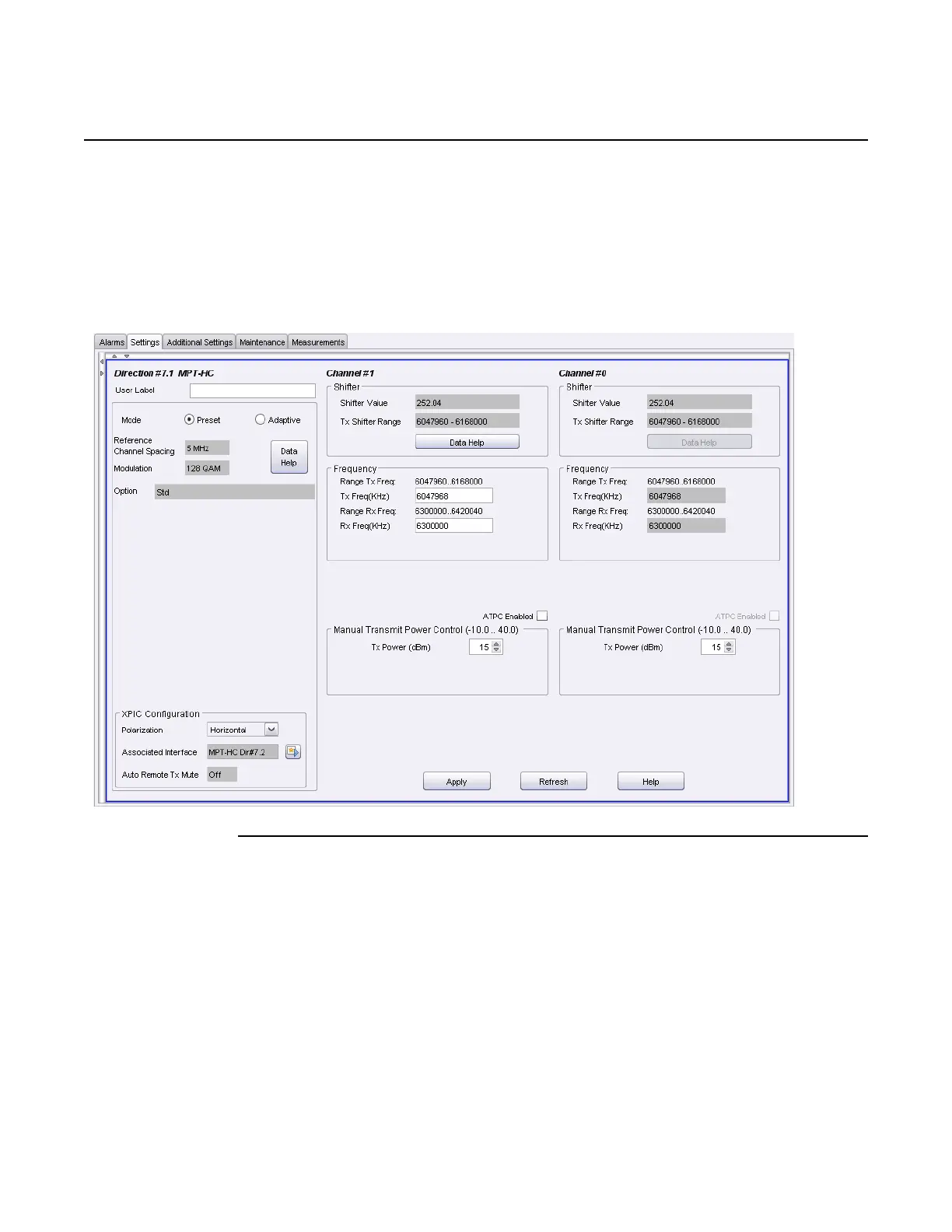 e. Provision Horizontal radio channel XPIC Configuration Polarization to