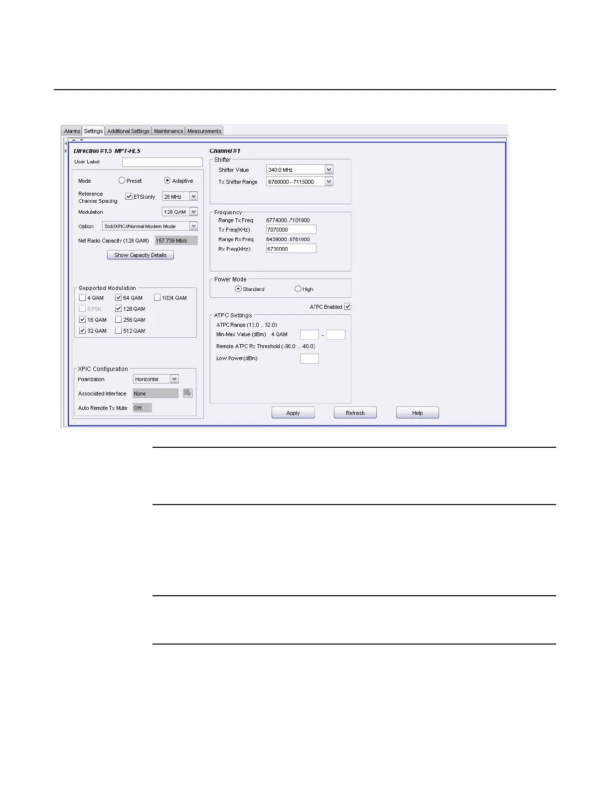 Figure 622 Provisioned MPT-HLS 1+0 Horizontal XPIC radio channel