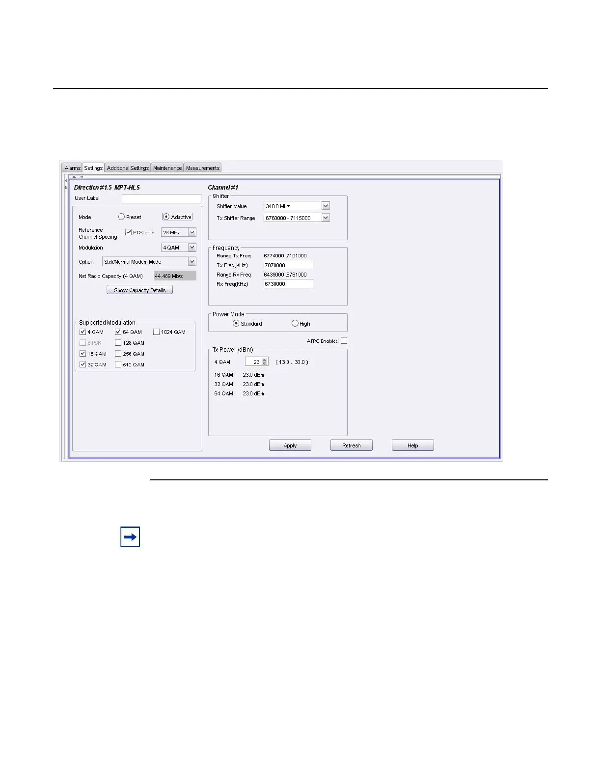 Figure 628 MPT-HLS Settings tab for adaptive modulation