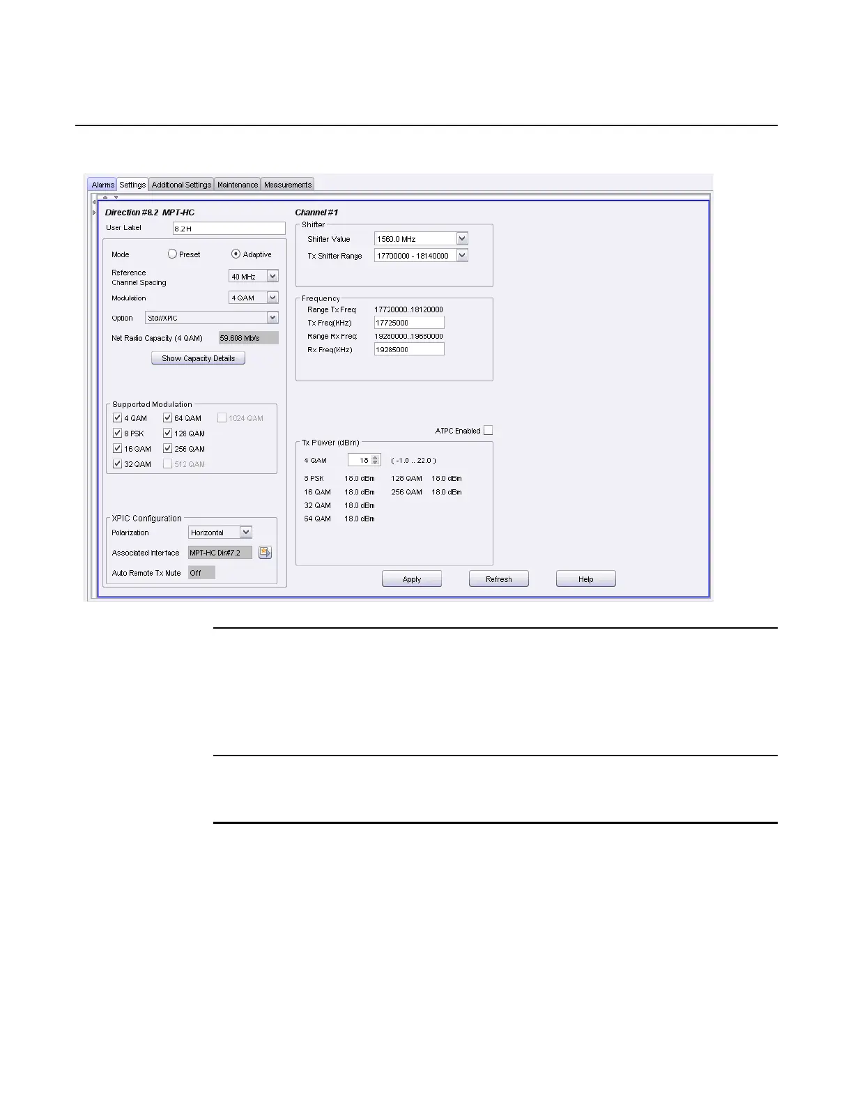 Figure 640 Provisioned MPT ODU 1+0 Horizontal XPIC radio channel
