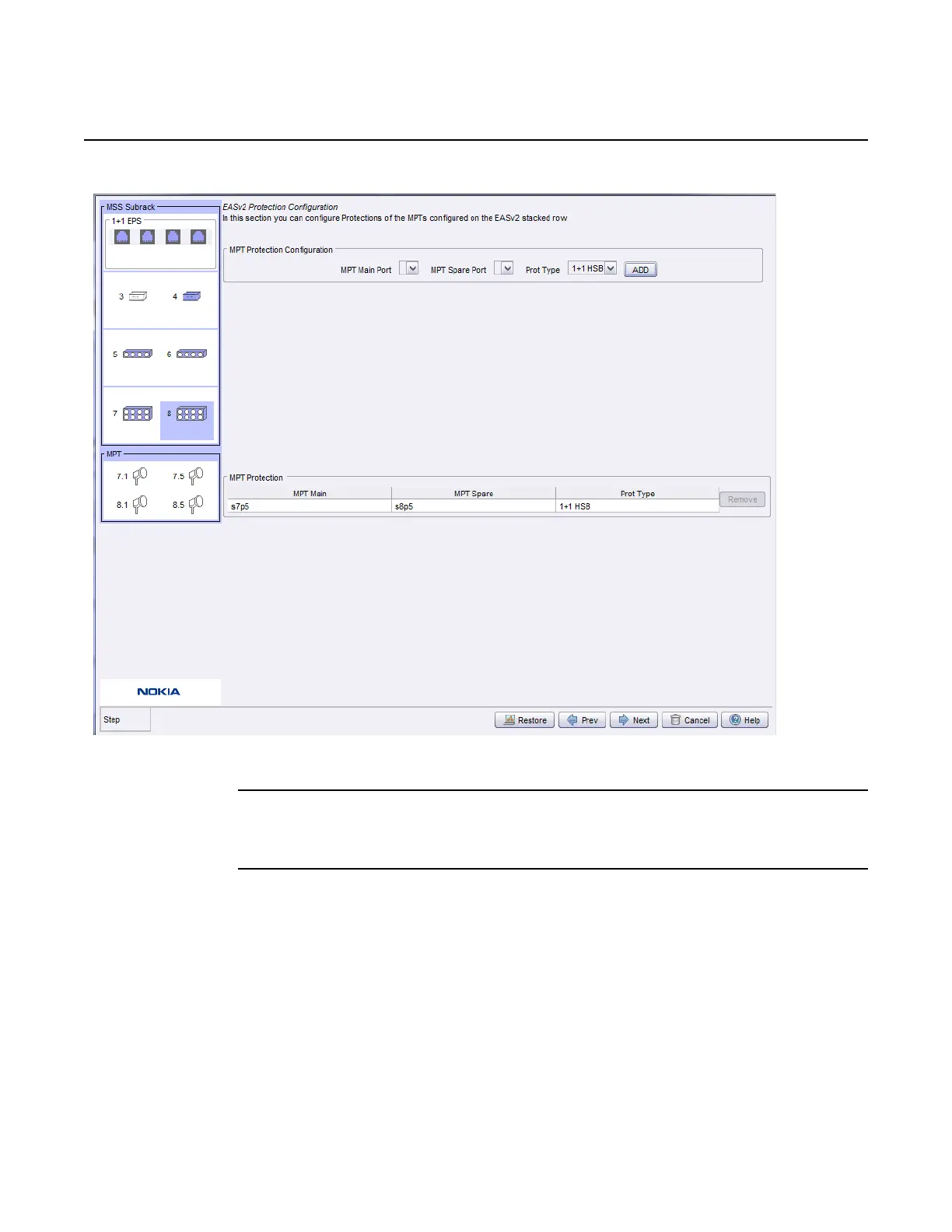 After one port is enabled the screen for MPT configuration appears.