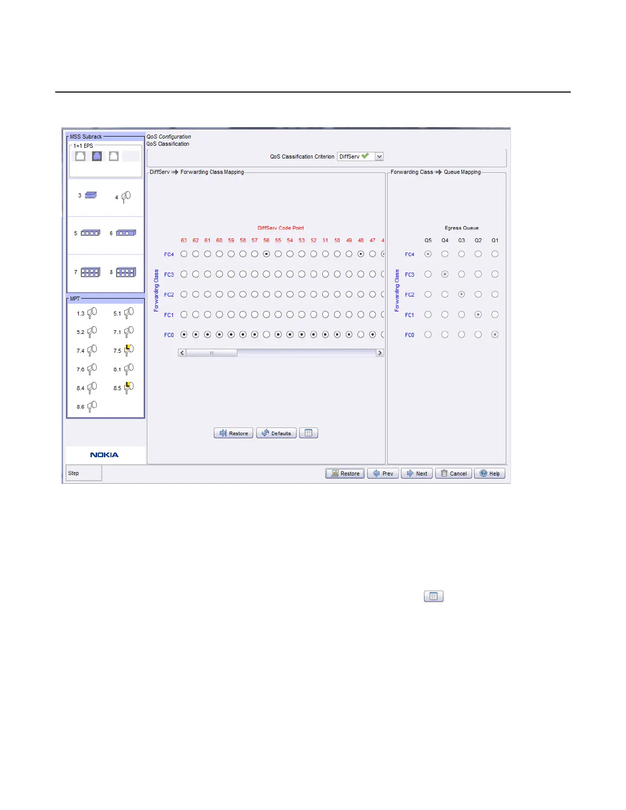 with the current association “DiffServ to Forwarding Class Mapping”, as