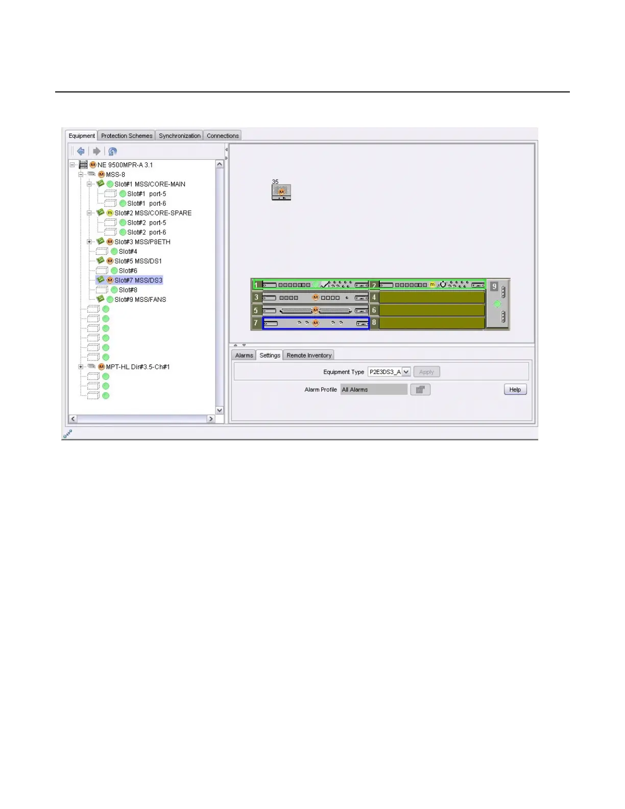 Nokia 9500 MPR - Figure 727 Main Equipment Window: PDH DS3 Transponder Card Highlighted