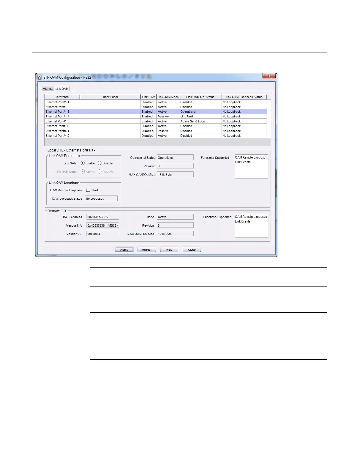The loopback is enabled. The Link OAM Loopback Status is updated to Remote