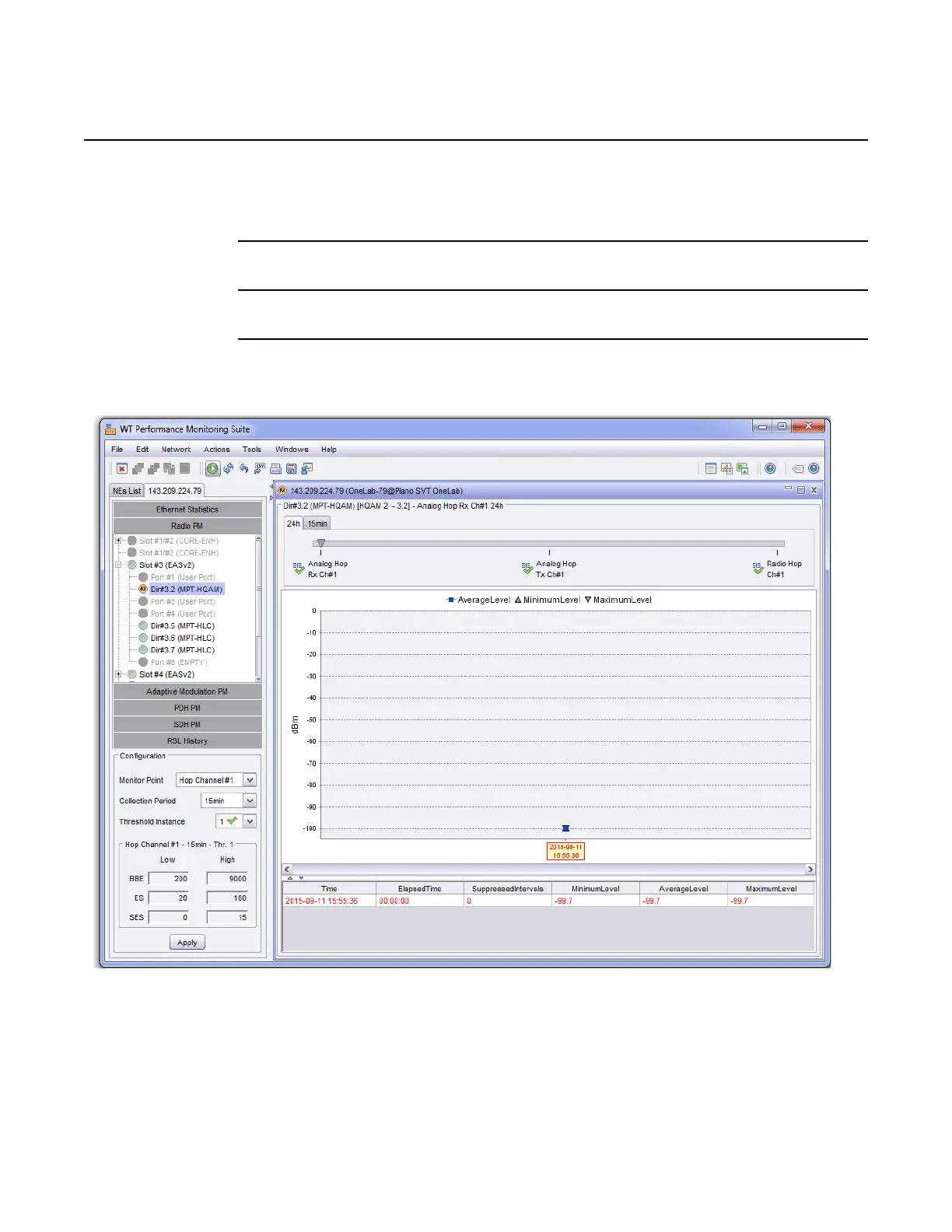 2. From the Radio PM pane, select radio port on which to run radio PM.