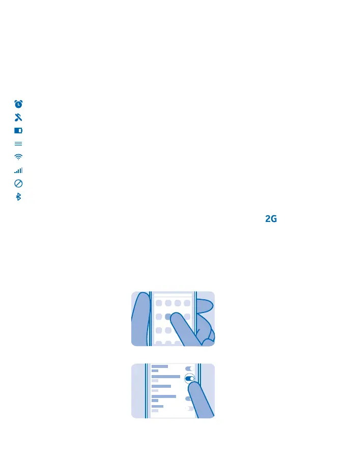 The type of mobile network you're currently connected to may be shown with a single letter, a