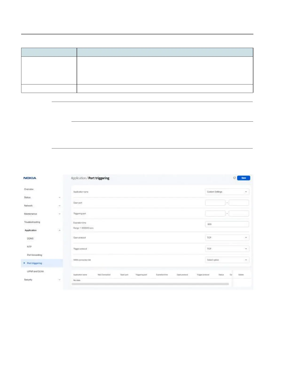 Click Application→ Port triggering in the left pane. The Port triggering page displays.