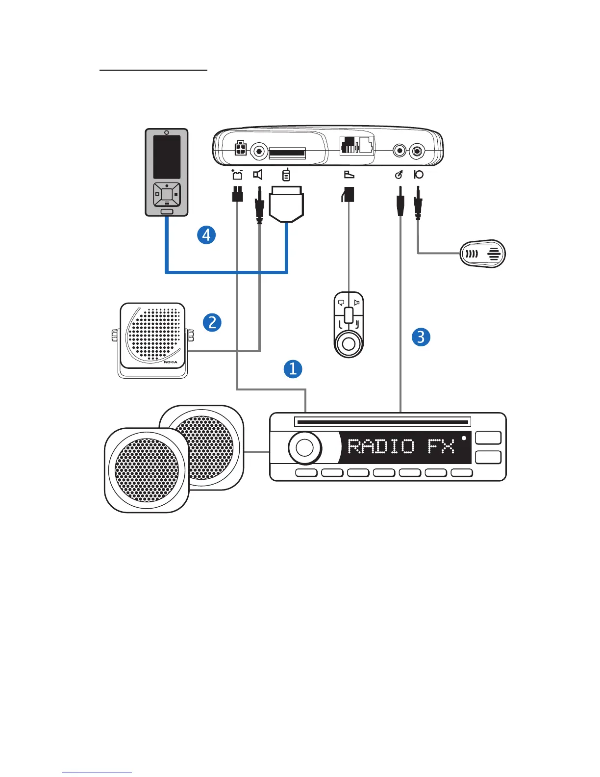 2. For phone calls, connect the loudspeaker output of the hands-free