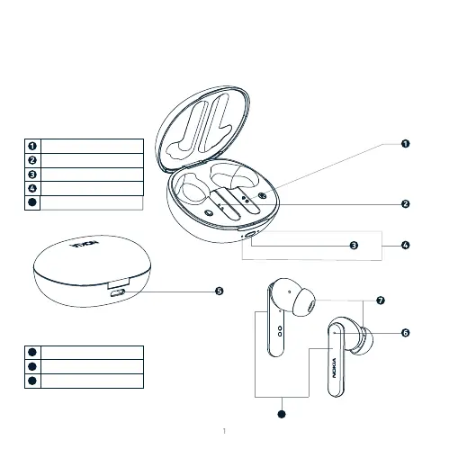 Nokia Clarity Earbuds+ - Product Overview; Charging Case Components; Earbud Components