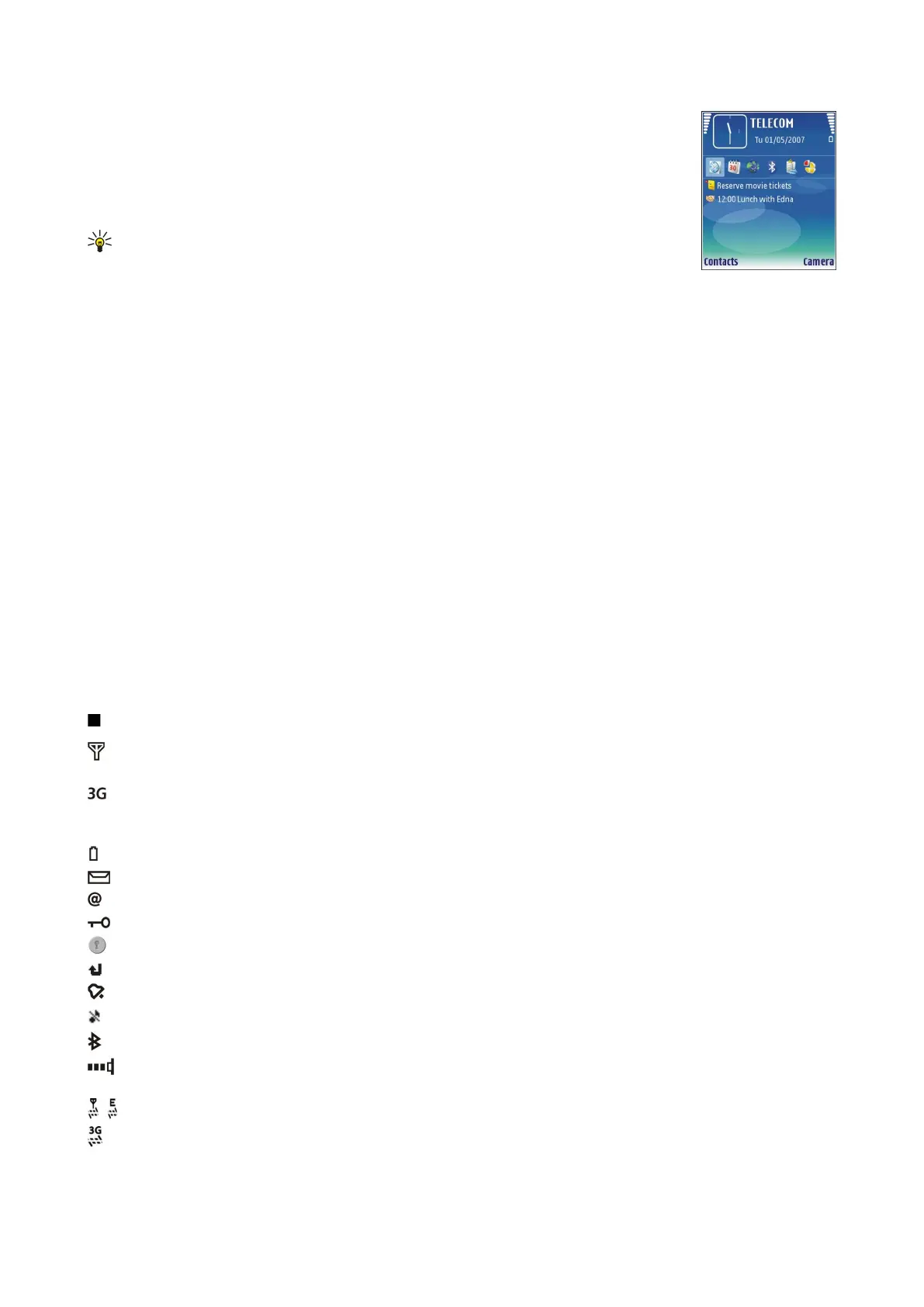 In the standby mode, you can see different information, such as your service provider, time, and different indicators, including