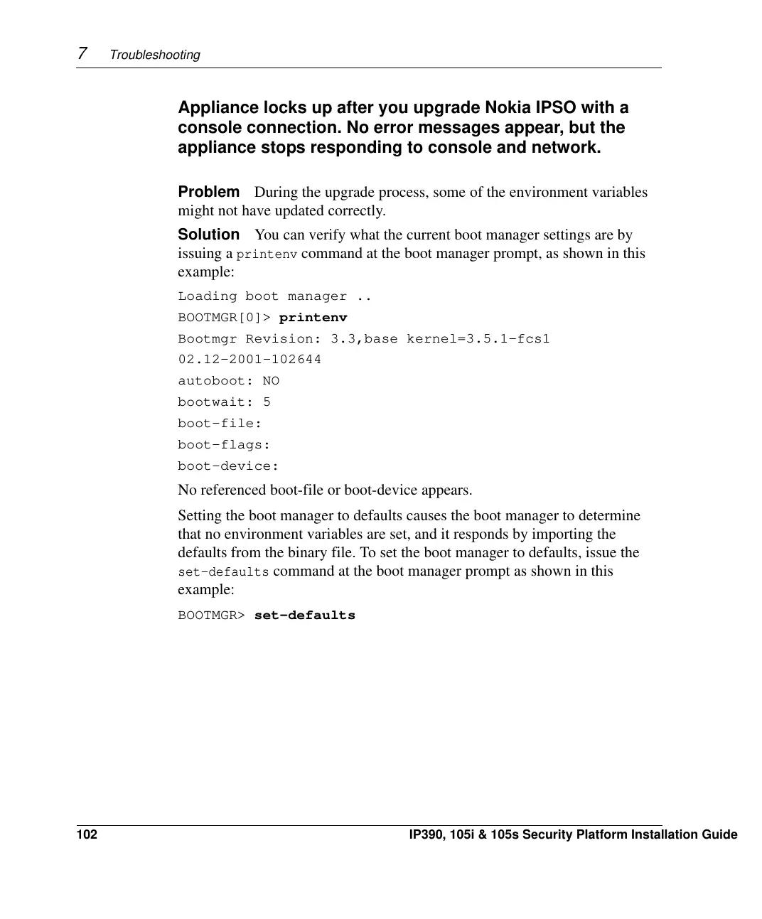 defaults from the binary file. To set the boot manager to defaults, issue the