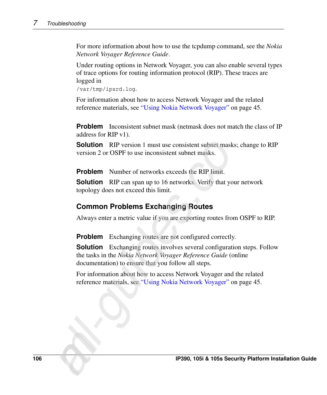 reference materials, see “Using Nokia Network Voyager” on page 45.