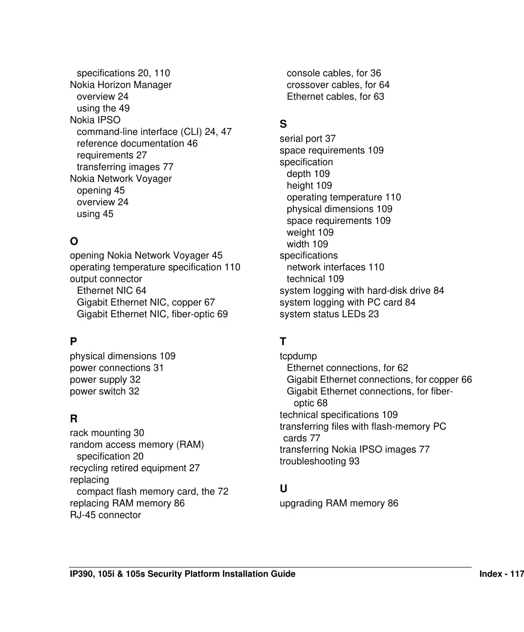 IP390, 105i & 105s Security Platform Installation Guide Index - 117