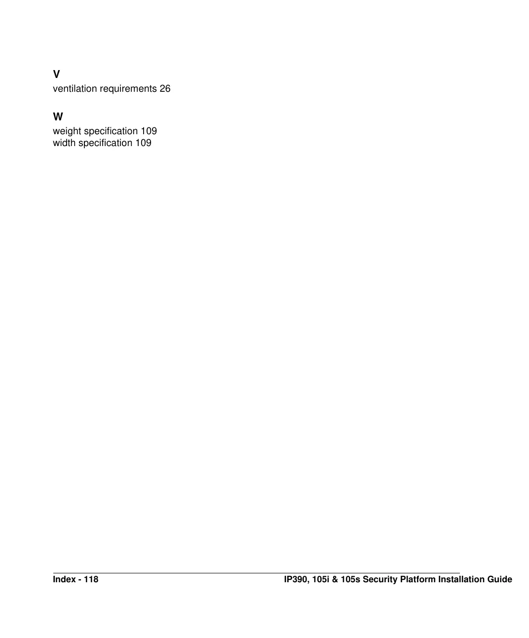 Index - 118 IP390, 105i & 105s Security Platform Installation Guide