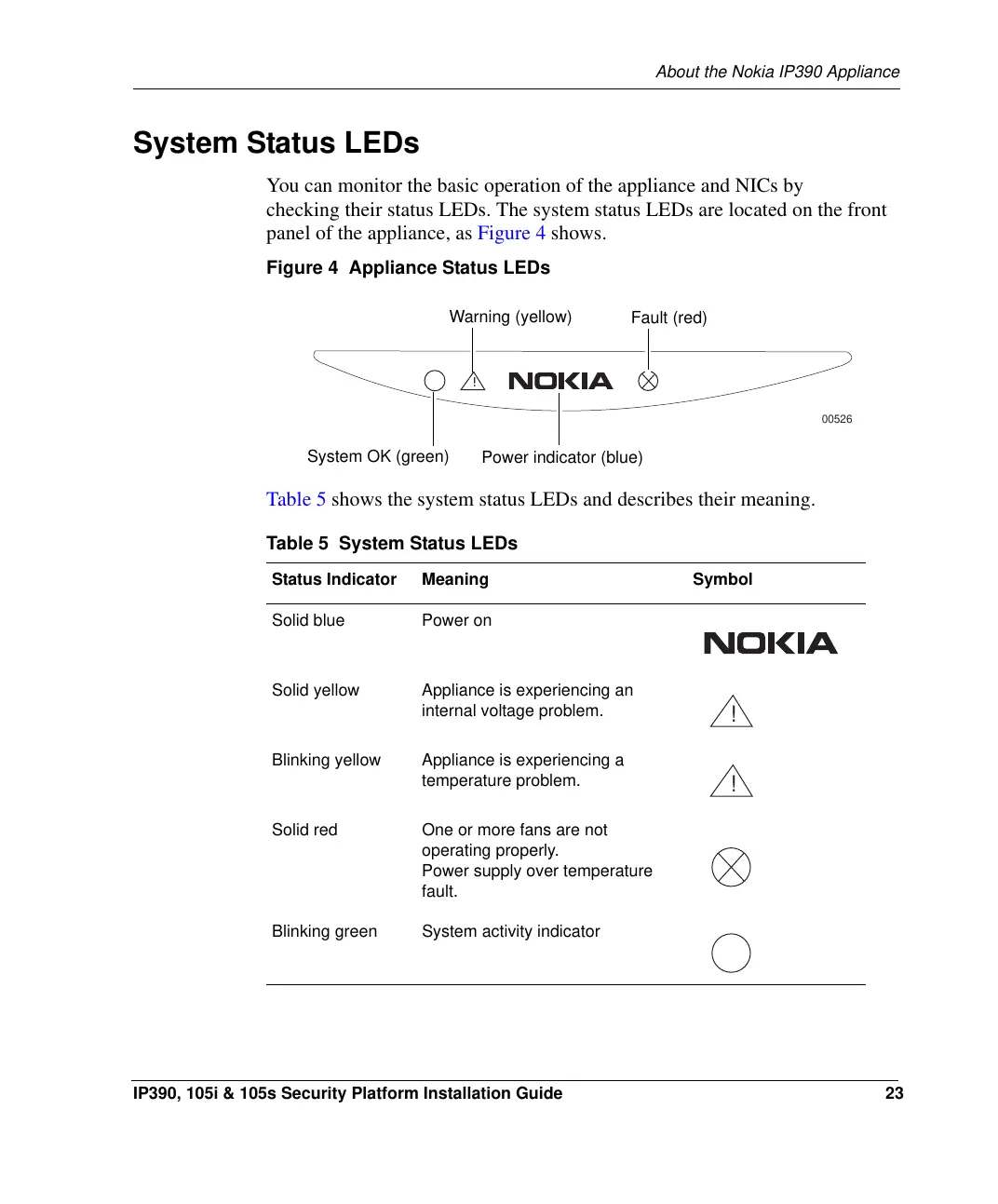 Table 5 System Status LEDs