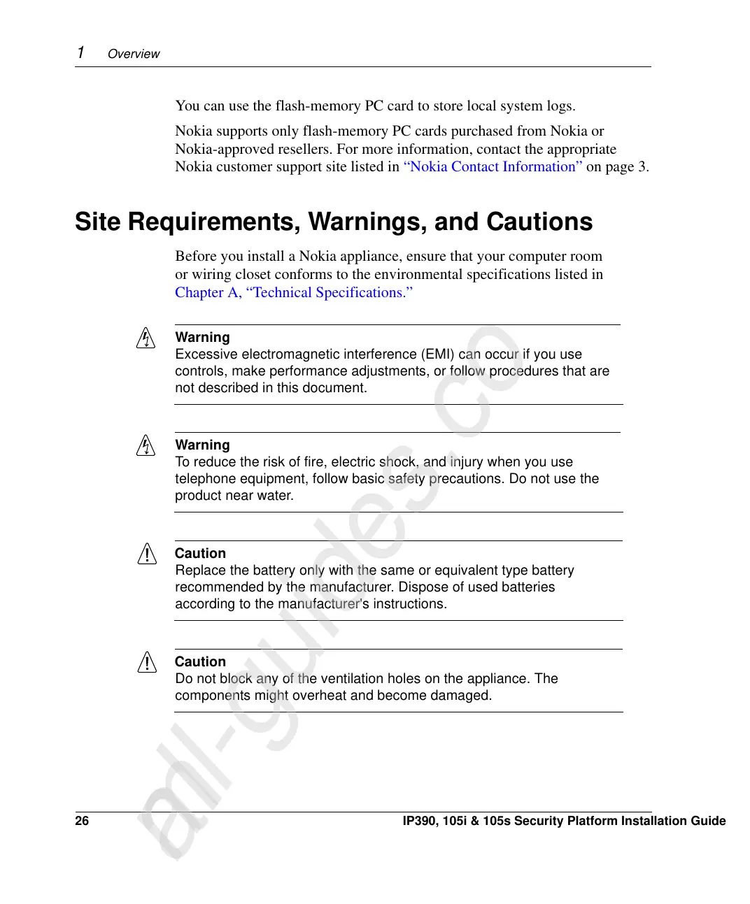 Before you install a Nokia appliance, ensure that your computer room