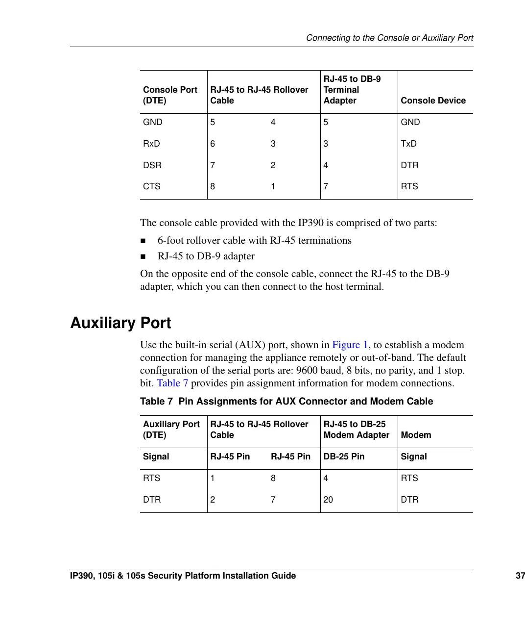 Table 7 Pin Assignments for AUX Connector and Modem Cable