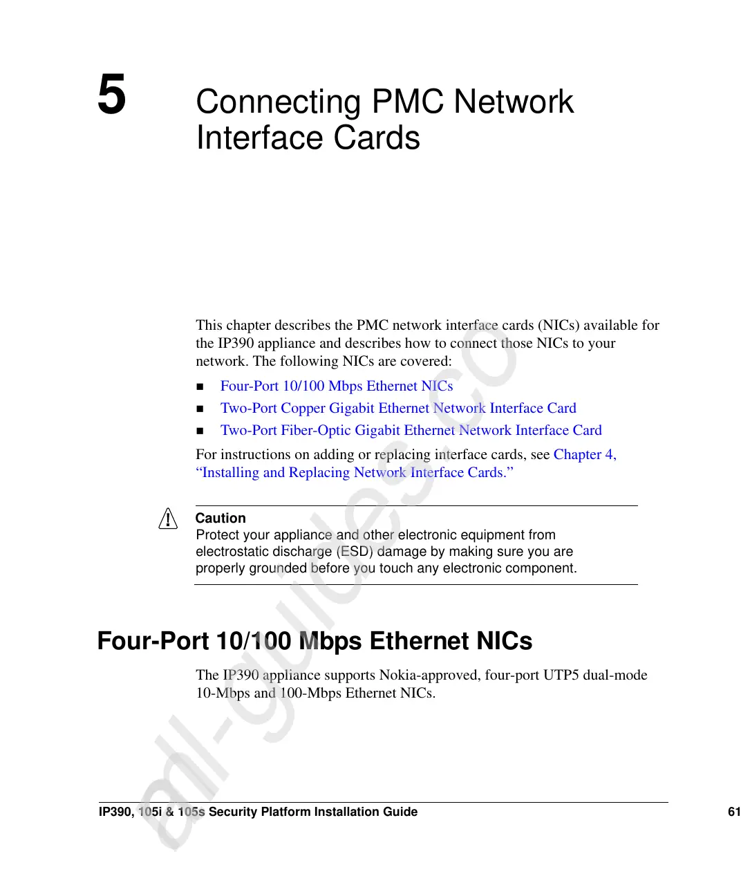 The IP390 appliance supports Nokia-approved, four-port UTP5 dual-mode
