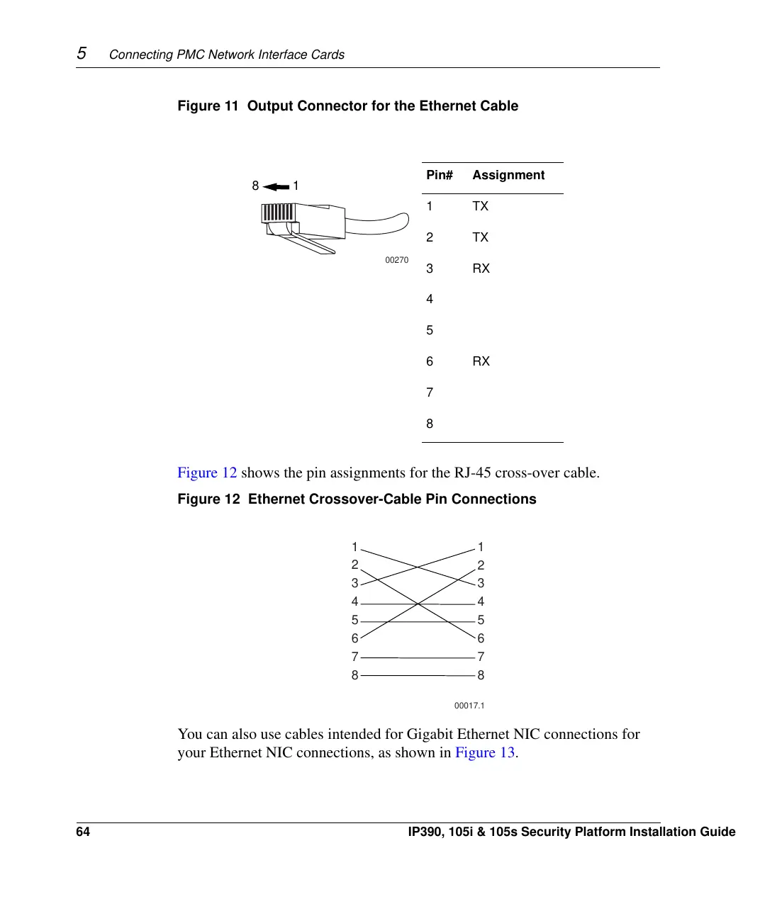 Figure 12 shows the pin assignments for the RJ-45 cross-over cable.